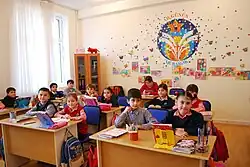 Od získání nezávislosti bylo jedním z prvních zákonů, které parlament přijal, aby se distancoval od Sovětského svazu, přijetí modifikované latinky, která nahradila cyrilici.[160] kromě toho ázerbájdžánský systém prošel jen malými strukturálními změnami. K počátečním změnám patřilo obnovení náboženské výchovy (zakázané v sovětském období) a změny učebních osnov, které znovu zdůraznily používání ázerbájdžánského jazyka a odstranily ideologický obsah. Kromě základních škol zahrnují vzdělávací instituce tisíce předškolních zařízení, všeobecné střední školy a odborné školy, včetně specializovaných středních škol a technických učilišť. Vzdělávání do deváté třídy je povinné.[161]