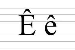 - Ve francouzštině se Ê používá ve slovech, kde se písmeno E nemá vyslovovat jako šva, ale jako polootevřená přední nezaokrouhlená samohláska. Používá se místo È ve slovech, kde se ve starším zápisu psalo ES.[1]