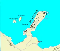 Obrázky, zvuky či videa k tématu Île Longue na Wikimedia Commons - https://www.defense.gouv.fr/marine/dossiers/l-ile-longue/l-ile-longue-quelle-histoire