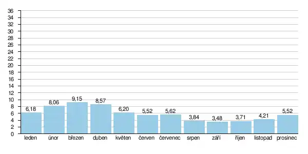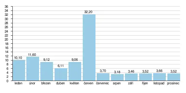 Průměrné dlouhodobé měsíční průtoky Úhlavy (m³/s) ve stanici Štěnovice:[25]