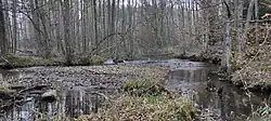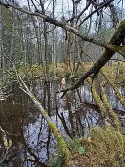 Většinu území tvoří lužní les, konkrétně zmapovaný jako typ L2.2 Údolní jasanovo-olšový luh.[6] Tyto lesní porosty vznikly s největší pravděpodobností náletem dřevin do neobhospodařovaných ploch. Mezi typické druhy dřevin tohoto typu lesa patří olše lepkavá (Alnus glutinosa), jasan ztepilý (Fraxinus excelsior), javor klen (Acer pseudoplatanus), smrk ztepilý (Picea abies), střemcha obecná (Prunus padus), bez černý (Sambucus nigra) a další.[7] [6]