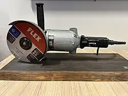 Úhlová bruska DL 9E (historický stroj vystavený v dceřiné společnosti FLEX-Elektronářadí)