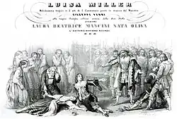 - Podle hry italský skladatel Giuseppe Verdi tragickou operu o 3. dějstvích pod názvem Luisa Millerová na libreto Salvatora Cammarana. pera měla premiéru 8. prosince 1849 v neapolském Královském divadle San Carlo.[5]