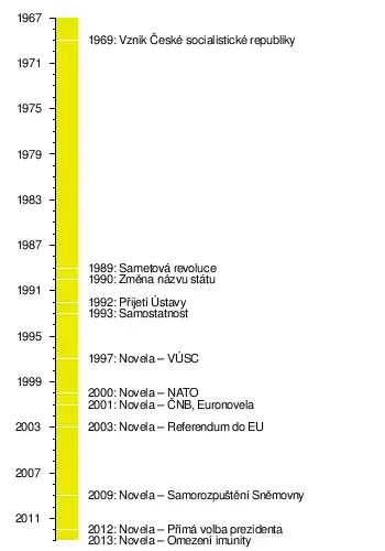 Pro Českou republiku a její ústavní právo je typická výrazná stabilita a reálná neměnnost (polylegální)[P 5] ústavy. Od účinnosti Ústavy došlo jen k několika mála změnám, které však nikterak výrazně neovlivnily podobu českého ústavního systému.[58]