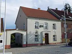 - Budova stojící v dolní části náměstí byla dříve měšťanskou školou, dnes slouží prvnímu stupni základní školy. Byla vystavěna v novorenesančním slohu se štítem nad středem průčelí, pod římsou a nad okny do 1. patra je vyzdobena sgrafity. Plány na stavbu nové škola vypracoval roku 1909 stavitel Otakar Polák. Samotné stavby se však ujal stavitel František Troníček. V září 1912 byla nová škola úředně převzata a slavnostně vysvěcena. Při 90. výročí stavby proběhla rekonstrukce, která byla prováděna podle dobových fotografií tak, aby byla zachována historická osobitost.