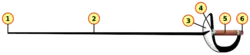U kordu musí zbraň projít válcem o průměru 13,5 cm a délce 15 cm, což omezuje její šířku na 13,5 cm. Na rozdíl od fleretu je číška excentrická a hluboká 3–5,5 cm. Excentričnost je omezena na 3,5 cm (tedy čepel nesmí procházet číškou dále než 3,5 cm od jejího středu).