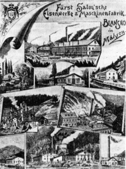 Historie železářství v regionu spadá prakticky až do pravěku, kdy zde byla využívána lehce tavitelná železná ruda. Těžba a zpracování železné rudy od středověku jsou spjaty zejména s lokalitami v Josefovském údolí či v okolí vsí Olomučany a Rudice. K zpracování železa na blanenském panství došlo roku 1698, kdy majitelé panství Gellhornové založili po vzoru sousedního Lichtenštejnského Pozořického panství první železný hamr. Ten ležel v Arnoštově údolí a vyráběl kujné železo a litinové výrobky. V roce 1766 koupil blanenské panství včetně železáren šlechtický rod Salmů. Největší rozvoj strojíren zahájil hrabě Hugo František Salm, za něhož se blanenské strojírny staly na dlouhou dobu největší továrnou v Rakouském císařství. V Blansku byla postavena kuplovací pec, válcovna, slévárna, modelárna, strojírna, následovaly provozy destilační uhelné peci, prachárny, byly postaveny hamry, papírna, v údolí Svitavy a Punkvy vyrůstaly nesčetné milíře. K Salmovým továrnám patřila i Hugova huť v Jedovnicích a továrny na stroje v Brně a v Doubravici. O rozvoj výroby se zasloužil i Karel Reichenbach, který byl ředitelem Salmových průmyslových podniků. Blanenské strojírny se staly zejména významným výrobcem užitkové i umělecké litiny, která se vyvážela do celého Rakouského císařství i do německých států. Roku 1896 prodali Salmové železárny a strojírny Akciové společnosti pro stavbu strojů Breitfeld-Daněk. Došlo k dalšímu rozvoji podniku, byly zbudovány nové slévárenské a strojírenské provozy.