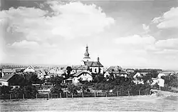 ![]() Letecký snímek vesnice z 50. let 20. století | |