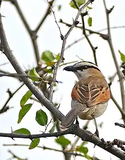 - ↑ a b FUCHS, Jérôme; BOWIE, Rauri C.K.; FJELDSÅ, Jon. Phylogenetic relationships of the African bush-shrikes and helmet-shrikes (Passeriformes: Malaconotidae). Molecular Phylogenetics and Evolution. 2004-11, roč. 33, čís. 2, s. 428–439. Dostupné online [cit. 2024-04-18]. ISSN 1055-7903. doi:10.1016/j.ympev.2004.06.014.