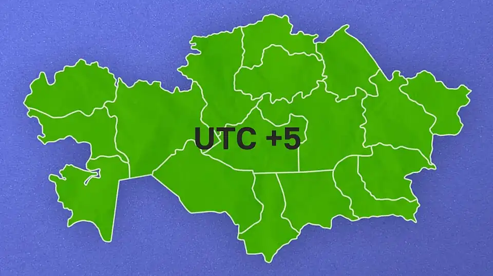 - UTC+5 — oblasti Gurjevská, Mangyšlacká, Aktobská, Kustanajská a Kyzylordská