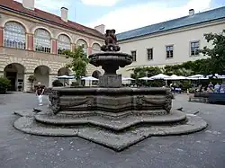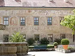 Fresky na dvorní stěně jižního křídla (nalevo od hlavního vstupu do zámku) ve čtyřech etážích nad sebou: