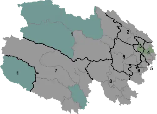 | Podřízené celky | 2 městské prefektury, 6 autonomních prefektur |