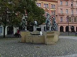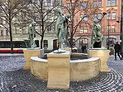 Obrázky, zvuky či videa k tématu Kašna na Senovážném náměstí v Praze na Wikimedia Commons