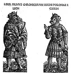 Podle Velkopolské kroniky z 13. či 14. století jsou Slované potomci Jávana, syna Jáfetova, syna Noemova. Jejich pravlastí je Panonie, jejíž název je odvozován od jejího vládce, Pána. Ten měl tři syny - nejstaršího Lecha, prostředního Rusa a nejmladšího Čecha, kteří se rozhodli vydat na sever a založili tři národy.[2]