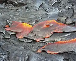 - lávové proudy s různou strukturou – pahoehoe, nebo Aa lávy (v závislosti na viskozitě)