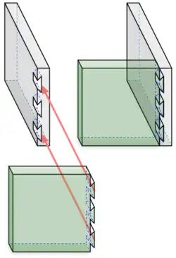 Čepy a dlaby mohou mít tvar pravoúhlých hranolů, které lze do sebe zasunout libovolným směrem, anebo mohou být lichoběžníkovité, které dovolují zasunutí jen jedním směrem. Takové spojení se někdy nazývá cinkování nebo "na rybinu".[1]