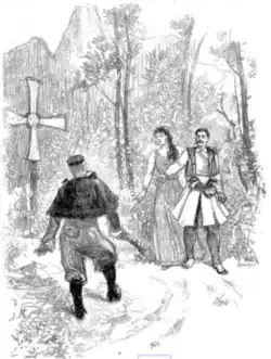 (2. obraz – Ruiny téhož místa, za úsvitu) Černohorci oslavují vítězství (sbor Victoire! ... Le Christ a combattu pour la Montagne-Noire!). Pak ale naleznou Aslara a Mirka mrtvé, na pohled společně zabité v boji. Otec Sava pronáší modlitbu za hrdiny padlé za vlast (árie Voici les frères). Černohorští muži pějí hymnu bratrství (sbor Le soleil se lève glorieux).[46]