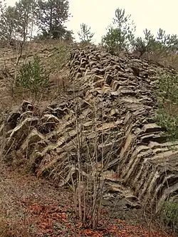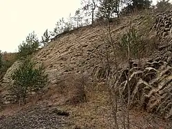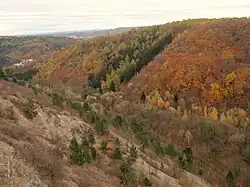 Pohled na skalní výchozy NPP Černé rokle z protějšího svahu