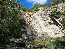 - ↑ V masivní lavici krinoidových vápenců je v Černém lomu odkryta hranice mezi silurem a devonem.[4] Krinoidové vápence jsou složeny z článků krinoidů (Crinoidea, ostnokožců).[5] Jsou velice čistým zdrojem vysokoprocentního vápence a proto jsou těženy a to někdy nejen za účelem výroby vápna a cementu, ale i pro dekorativní účely.[5]