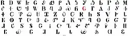 | Ꭰ a | Ꭱ e | Ꭲ i | Ꭳ o | Ꭴ u | Ꭵ v |