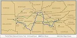 Celá cesta do Oklahomy byla dlouhá 1 900 km a většinou probíhala pěšky, místy kombinovaná s vozy s koňským spřežením, či lodí.