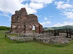 Byl realizován jako stavba ve tvaru čtyřkonchální baziliky mezi 4. a 6. stoletím, nejpravděpodobněji v období panování byzantského císaře Anastasios I. Je jediným křesťanským chrámem na světě, kde byl oltář prvoplánově otočen k severu, což souvisí s ranými křesťanskými bohoslužbami, které se nejprve sloužily v původních chrámech uctívání boha Mitry. V každé ze čtyř stran vysoké vnitřní síně se nacházel polocylindrický výklenek krytý kupolí. V severní části chrámu byl umístěn bazén, který byl obložen mozaikami z růžového mramoru, který sloužil nejprve jako lázně a později jako křtitelnice. Chrám býval zevnitř velmi bohatě vyzdoben malbami a mozaikami. Do dnešních dnů se zachovaly pouze jeho části, které byly v roce 2013 zakonzervovány.