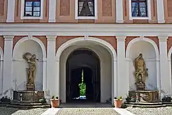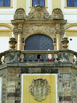 Portál hlavního průčelí s erbem rodu Hohenlohe-Langenburg