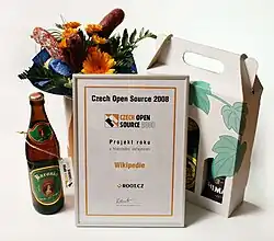 - ↑ Česká Wikipedie se stala vítězem ankety Czech Open Source 2007 Root.cz, 16. 5. 2007, redakce