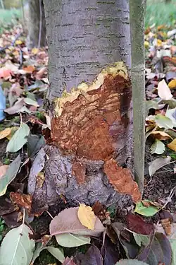 - ↑ a b ČERNÝ, Karel. Integrovaná ochrana ovocných dřevin před patogeny z r. Phytophthora. [Průhonice]: [s.n.] 35 stran s. Dostupné online. ISBN 978-80-87674-35-2, ISBN 80-87674-35-9. OCLC 1260123155