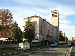 Stavebním symbolem první republiky v Budějovicích je nová záložna u Černé věže architektů Bohumila Kněžka a Josefa Václavíka (1936),[31] radikálně funkcionalistický obchodní dům Brouk a Babka („Broukárna“) architekta Karla Chocholy[32] nebo kostel sv. Vojtěcha architekta Jaroslava Čermáka (1939).
