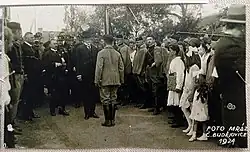 Ustavení Československa 28. října 1918 se v Budějovicích obešlo bez problémů, k čemuž dopomohli českoslovenští legionáři a italská posádka ve městě. Právě přes Budějovice se zakladatel republiky Tomáš Garrigue Masaryk 20.–21. prosince 1918 (17. prosince byl ještě v Itálii, v Padově) vrátil do vlasti.[28] Tuto skutečnost také dokládá pamětní deska na hlavním nádraží, kde tehdy T.G. Masaryk ve francouzském železničním vagóně svého vlaku z pátku na sobotu přenocoval. Pro dopravu z nádraží (a zpět) na po něm nově pojmenované centrální náměstí, kde bylo oficiální přivítání s projevy, použili Masaryk a jeho doprovod 14 nablýskaných automobilů jako „dopravní prostředky nové a demokratické“. Na náměstí mu byl také doručen novým starostou Budějovic Augustem Zátkou pozdravný telegram předsedy vlády Karla Kramáře. Dochované filmové záběry jsou pouze z českobudějovického nádraží, kde k uvítání hrála hudba Otakara Jeremiáše a italské posádky, neboť náhlá sněhová přeháňka znemožnila v pátek 20. prosince 1918 filmování na náměstí i ve městě.[29]