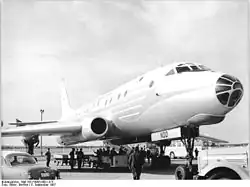 Dne 2. listopadu 1957 přistálo na letišti v Ruzyni první proudové dopravní letadlo Tupolev Tu-104 imatrikulace OK-LDA. Důvody koupě ruského letadla byly kromě technické pokročilosti také politické, ruská strana chtěla tento letoun propagovat i v západním světě, kam ČSA létaly.[15] ČSA byly po Aeroflotu druhou leteckou společností pravidelně provozující proudové letouny na svých linkách.[16] Po roce 1960 začala společnost používat letadla značky Iljušin, která měla kapacitu až 110 míst. Dne 13. února 1962 zahájily ČSA provoz na první transatlantické lince směřující z Prahy do Havany, na které létalo čtyřmotorové turbovrtulové letadlo Bristol Britannia, které bylo pronajato od kubánské letecké společnosti Cubana de Aviación.