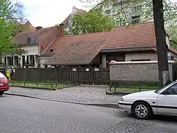 K nejlépe zachovalým historickým budovám areálu patří dnes původně školní budova v Kirchgasse 5. Slavnostní otevření se uskutečnilo 14. listopadu 1753, školní výuka se konala až do roku 1909. Na průčelním štítu je zřetelně viditelný kalich, který má upomínat nejen na původ budovy, ale i na skutečnost, že v letech 1754 až 1761 se zde nacházel první modlitební sál společenství. Ve dvou místnostech budovy se dnes nachází malé muzeum.[8] Jedná se o nejstarší zachovanou školní budovu v berlínské čtvrti Neukölln.