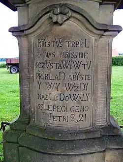 Nápis na kříži na návsi v Dolním Jelení z roku 1825[4]