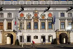 Později byla ještě radniční fasáda vyzdobena žlutošedými sgrafity s motivy mořských vln, lístků a květů.[7] Exteriér radnice zůstal v 17. století stejný, interiér byl poškozen požáry města v letech 1641 a 1655.[8]