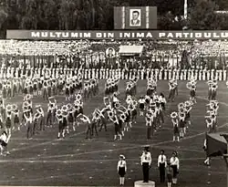 • Svazarm. Bleděmodré teplákové soupravy, kovové půlkruží s lávkou. Autoři: Karel Kovářík, Jiří Štembera, hudba Miloš Vacek. Celkem nacvičovalo 9000 cvičenců, na Strahově vystoupilo 6144 cvičenců.