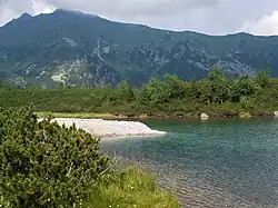Na severovýchodě se zvedá Žltá kopa a na jihu Malá Ľadová veža. Okolí jezera je porostlé kosodřevinou jen na jihu se nachází louka.