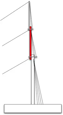 - peň - upevněná hlavní část stěžně, pod první čnělkou.