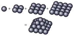Pokud spočítáme počet koulí, které jsou nutné k sestrojení pyramidy mající čtvercovou základnu sestavenou z n × n koulí, dostaneme pyramidové číslo.