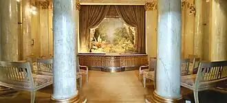 - ↑ Sovětská armáda zde pobývala pouze 1 den. Přesto to ale stačilo, aby na historických parketách zanechala „suvenýr“ – nesmazatelné stopy po pivních sudech.