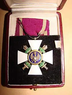 | Třídy | rytíř velkokříže ve zlatě rytíř velkokříže ve stříbře komandér důstojník rytíř stříbrná medaile bronzová medaile |