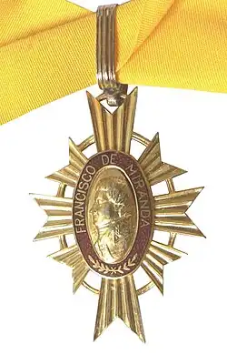 - ↑ a b Ley Sobre Condecoracion Orden Francisco de Miranda. Gaceta Oficial de Los Estados Unidos de Venezuela [online]. 2013-11-13 [cit. 2020-03-08]. Dostupné v archivu pořízeném z originálu dne 2013-11-13.