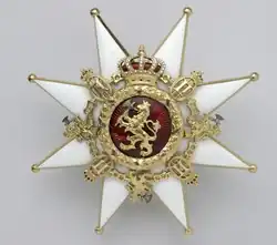 Hvězdou řádu byl osmicípý, bíle smaltovaný kříž se zlatými kuličkami na koncích. Na jeho středu byl odznak řádu, který byl obklopen řádovým řetězem, kde se pravidelně střídala korunovaná iniciála zakladatele O.II. a norský zlatý lev.