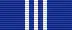 Stuha z hedvábného moaré široká 24 mm pokrývá kovovou destičku ve tvaru pětiúhelníku. Stuha je modrá se třemi bílými proužky širokými 1,5 mm uprostřed.[1][2]