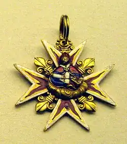 | Popis | odznakem je maltézský kříž s liliemi mezi svými rameny, na kříži spočívá obraz svatého Januaria |