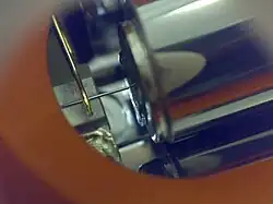Hrot je často zhotoven z wolframu nebo platiny-iridia, někdy rovněž ze zlata. Wolframové hroty se obvykle vyrábějí elektrochemickým leptáním, platiniridiové mechanickým střihem.