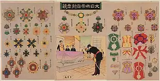 Prvním rytířským řádem udíleným Japonským císařstvím byl Řád vycházejícího slunce, který byl založen dne 10. dubna 1875.[1] Dne 27. prosince 1876 byl založen druhý japonský řád, Řád chryzantémy, který se od svého založení stal nejvyšším japonským vyznamenáním.[2] Dne 7. prosince 1881 byly založeny Medaile cti s červenou, zelenou a modrou stuhou, které se každoročně udílí od roku 1882. Dne 14. března 1887 k nim přibyla Medaile cti se žlutou stuhou.