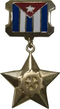- ↑ ARISTA-SALADO, Maikel. Condecoraciones cubanas : teoría e historia. [s.l.]: Trafford Pub ISBN 978-1-4269-4427-7, ISBN 1426944284. OCLC 668197808 S. 360. (španělsky)