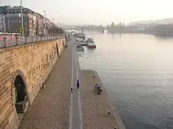 Typickou součástí navigace je nábřežní zeď (po níž často vede pozemní komunikace zvýšená nad původní terén). Na ni někdy navazuje náplavka, což je pobřežní plocha či komunikace v nižší úrovni, u níž se počítá s občasným zaplavením. Mimo sídelní útvary je navigace často tvořena sypanými nebo kamennými hrázemi podél vodního toku.