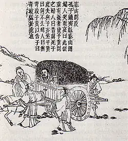 Mingský tisk zobrazující Konfucia na cestě do tehdejší metropole Luo-jangu